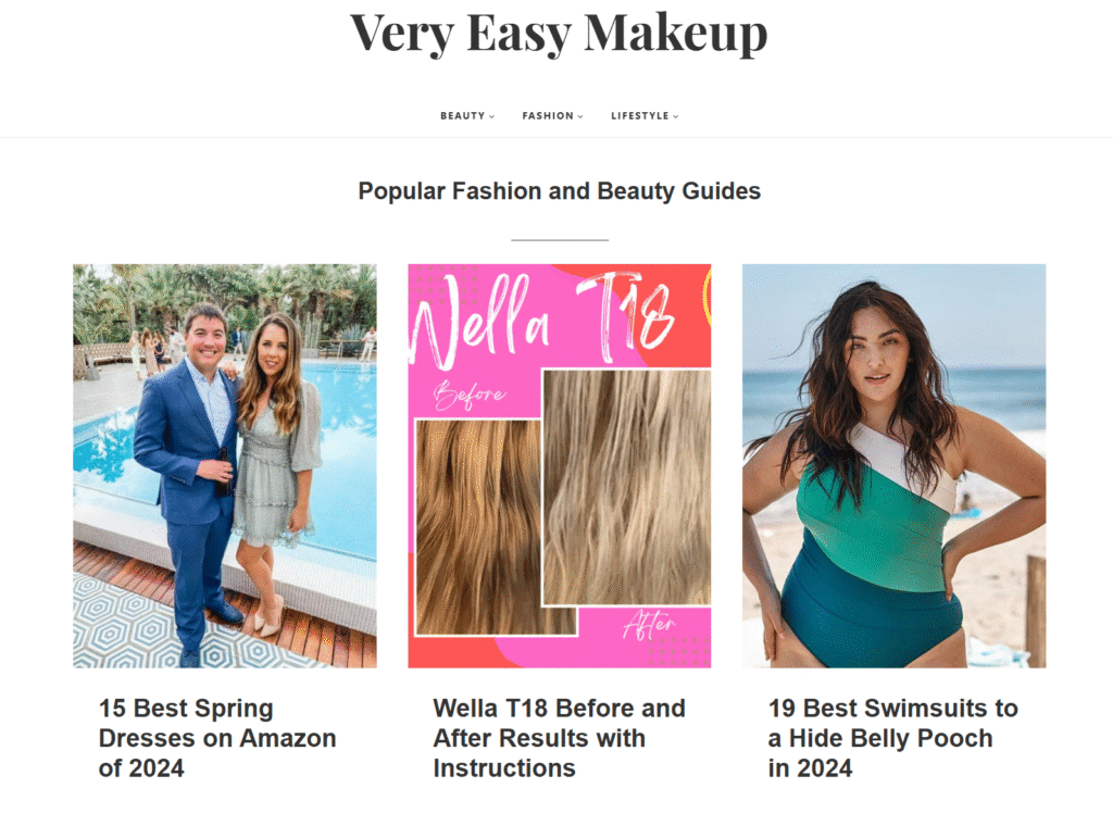 The menu structure on VeryEasyMakeup is clean and intuitive. Categories are clearly defined: skincare, makeup, fashion trends. No hunting through endless archives trying to find that one article about drugstore foundations.