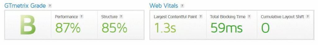 GTmetrix speed test
