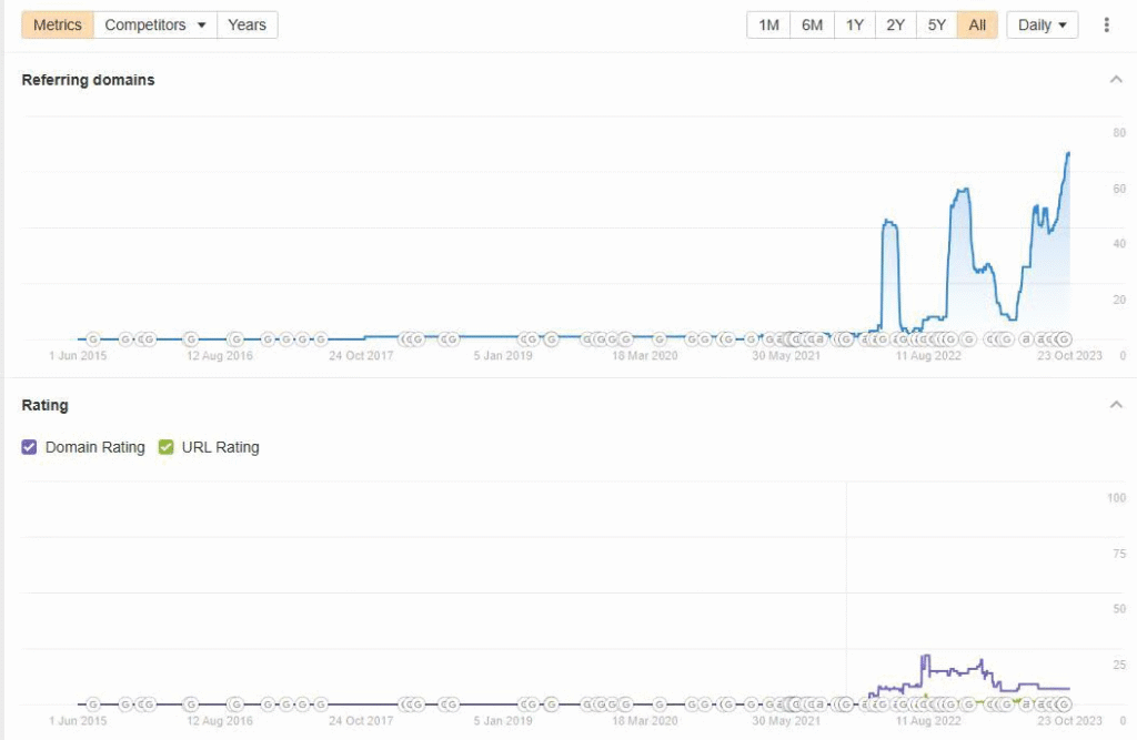 Using Ahrefs data reveals StazioneLuce ranks for minimal keywords and has few backlinks. This represents massive missed opportunity.
