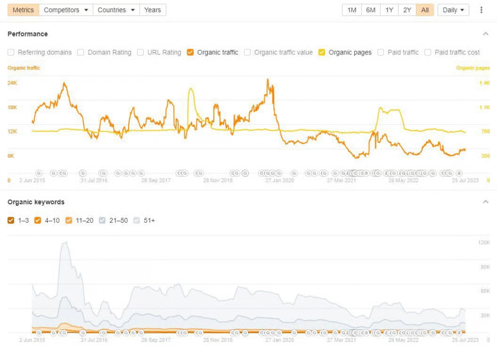 SEO Traffic Has Plummeted Dramatically. Traffic declined from over 20,000 monthly visitors in 2019 to just 5,000 currently—a devastating 75% drop.